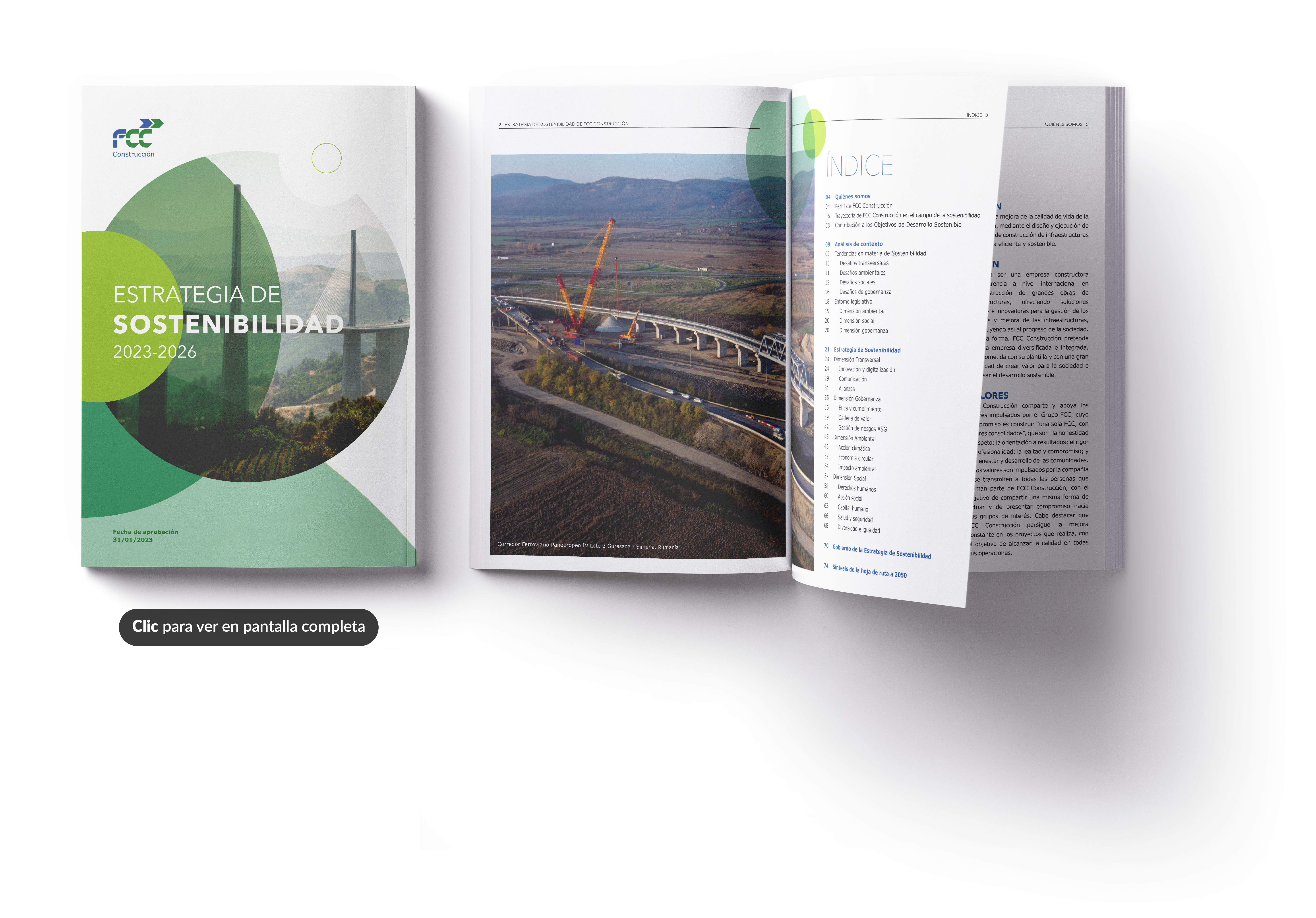La Estrategia de Sostenibilidad a 2050 es el eje central por el cual se materializa el compromiso de la compañía en alcanzar el logro de los Objetivos de Desarrollo Sostenible marcados en la Agenda 2030 de Naciones Unidas. FCC Construcción se posiciona como una de las empresas referentes en materia de sostenibilidad dentro del sector, gracias a su ambición por perseguir la mejora continua e impulsar la innovación y el desarrollo sostenible en todos sus proyectos.