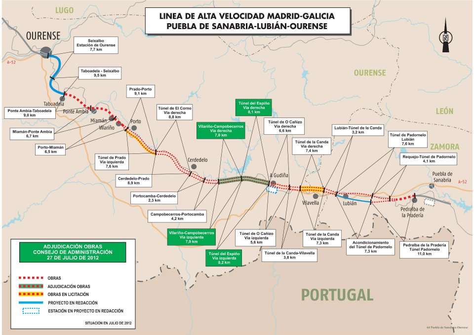 La Compañía de Servicios Ciudadanos construirá un nuevo tramo en el Corredor Norte- Noroeste de la línea de Alta Velocidad, Madrid- Galicia, la vía Izquierda del tramo Vilariño-Campobecerros por un importe de 97,8 millones de euros y un plazo de actuación de 38 meses; y realizará las obras de construcción de la primera fase de la nueva estación de Alta Velocidad de Gerona por un importe de 25,09 millones de euros y un plazo de 10 meses.