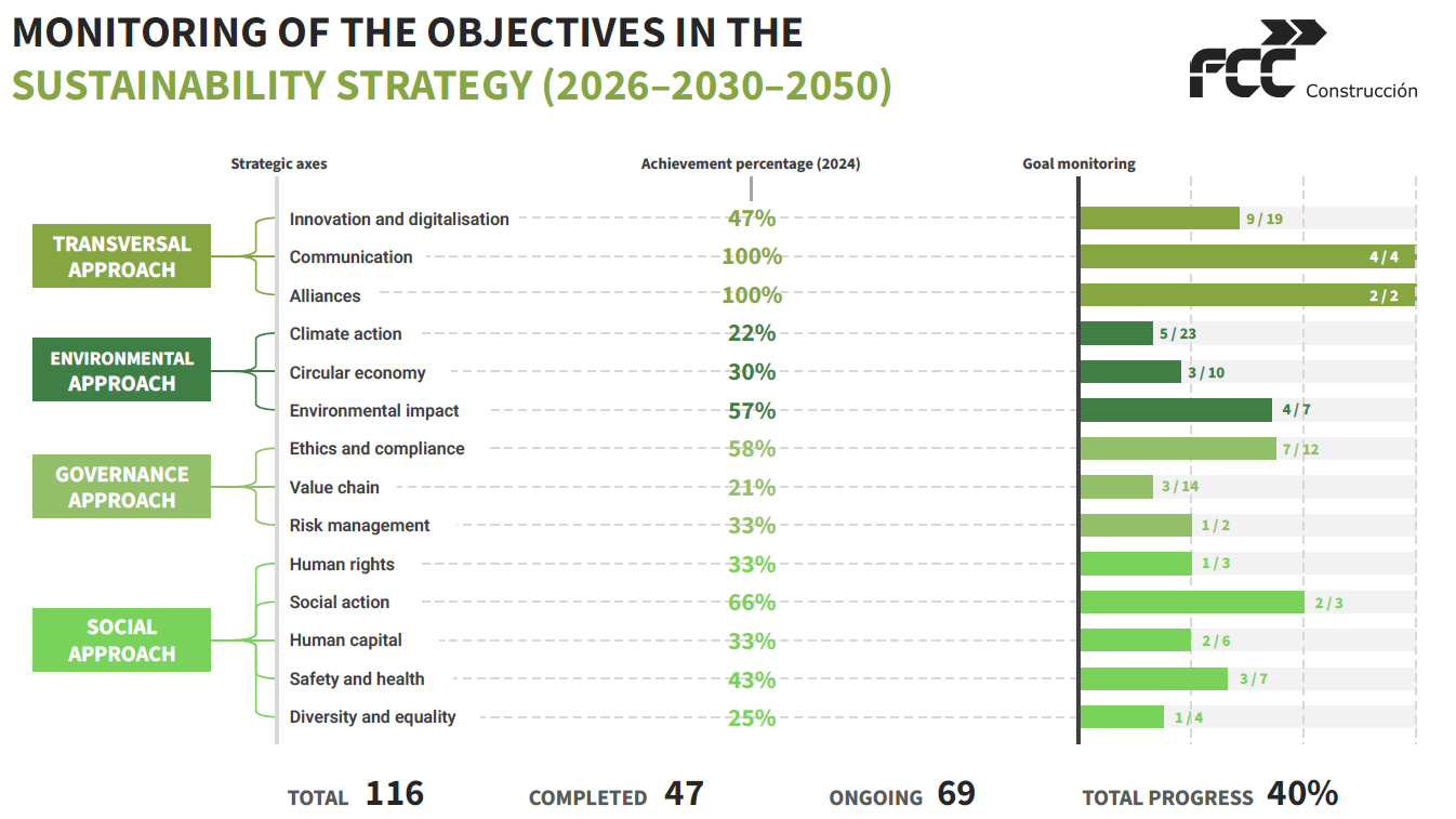 Based on the results obtained, FCC Construcción's Sustainability Strategy is consolidated as a firm commitment to transforming the challenges of the sector into opportunities for transformation, integrating innovation and responsibility into every aspect of its activity.