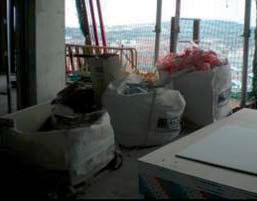 Con estas actuaciones, se consiguió separar selectivamente y gestionar de forma correcta los siguientes RCDs: escombro, papel-cartón, madera, chatarra, plástico fi lm, escombro sucio, yeso laminado y vidrio, de los que la empresa especializada proporcionaba mensualmente los datos de peso y volumen gestionado.