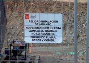 Se realizó la excavación de la zona contaminada por una empresa autorizada perteneciente al grupo FCC, con personal equipado específi camente para evitar inhalación y contacto con las partículas de asbestos. La zona de trabajos fue señalizada y delimitada con una única entrada de acceso para un mejor control, prohibiendo la entrada a personal no autorizado.
