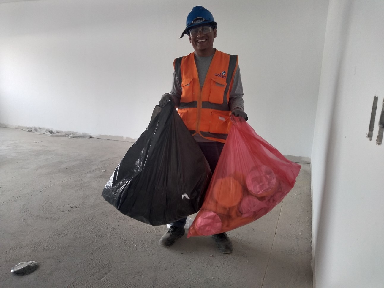 Estás tarjetas pueden ser insertadas en el identificador personal (fotocheck), obligatorio para el acceso y permanencia en obra, de esta forma, en caso de duda, el operario puede verificar en cualquier momento, con el código de colores y la información, si está realizando la separación de los residuos de manera adecuada. Además, para reforzar y mejorar esta gestión, se están llevando a cabo actividades de formación y sensibilización sobre la correcta gestión de los residuos sólidos peligrosos en la obra.