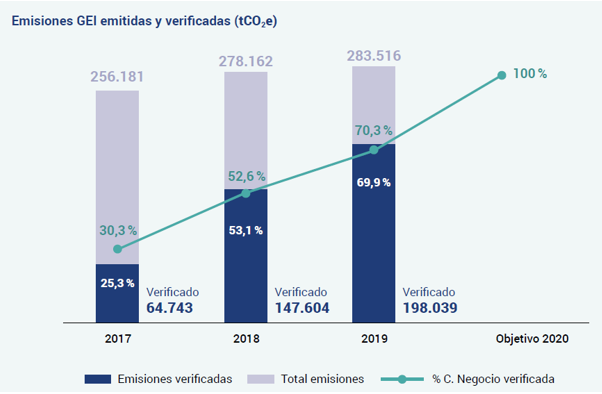 Durante este ejercicio, se han verificado por tercera parte los informes de emisiones de CO2 de 12 países en los cuales la compañía desarrolla su actividad de forma internacional: España, Portugal, Rumanía, Reino Unido, Nicaragua, Costa Rica, Panamá, El Salvador, México, Colombia, Chile y Perú.