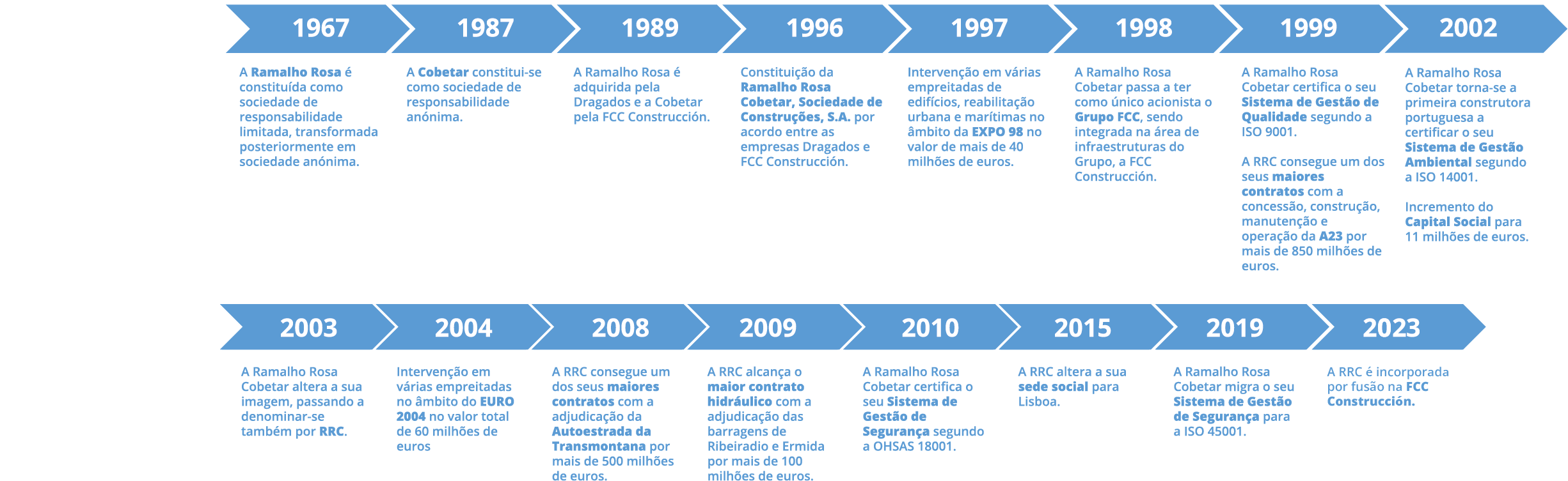 A FCC Construccion encontra-se em Portugal desde 1989, através da Ramalho Rosa Cobetar, entretanto integrada por fusão.
